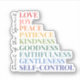 Celebrate the beauty of a Christ-centered life with this vibrant Fruit of the Spirit Bible verse sticker inspired by Galatians 5:22–23.