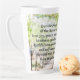 This Fruit of the Spirit Latte Mug features Galatians 5:22-23 written on the front, which says "But the fruit of the Spirit is love, joy, peace, patience, kindness, goodness, faithfulness, gentleness and self-control. Against such things there is no law." The verse is set against the backdrop of grapes in a vineyard. This is a great way to express your faith.
