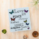 This binder features the apostle Paul's description of the fruit of the Spirit (Galatians 5): Love, joy, peace, patience, kindness, goodness, gentleness, and self-control. Featuring fancy fonts interspersed with bright multicolor butterflies against a background that's pale blue on the front, pale yellow on the back, and pale green on the spine (or click customize and choose any colour background you prefer). Personalize with your text on the spine. A great gift for Sunday School teachers, ministers, or any Christian who likes to be reminded of Biblical virtues. Perfect for classroom materials, recipes, scrapbooks, etc.
