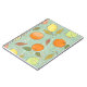 Fruit pattern with lemons, oranges, lime and grapefruit. Bright citrus fruits on a light green background with multicolored splashes of paint.