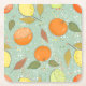 Fruit pattern with lemons, oranges, lime and grapefruit. Bright citrus fruits on a light green background with multicolored splashes of paint.