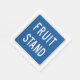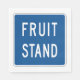 Introducing our charming Fruit Stand Road Sign Paper Napkins! Bring a dash of rustic charm to your table setting with these delightful napkins featuring a whimsical graphic of a fruit stand road sign. Crafted with care, each napkin showcases the iconic imagery of a white fruit stand sign against a serene blue background, adding a touch of countryside allure to any occasion.