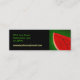 Colourful and vivid modern black green red eye catching custom mini business card template featuring an original oil on canvas painting of a vivid red watermelon on green background. Perfect for your fresh fruit and vegetables selling business.
