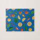 Cute Colourful Fruits Pattern With Blue Background, Green Leaves, Strawberry, Orange, Watermelon and Cherry Puzzle,