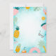 These invitations feature a pink flamingo, tropical leaves, and an array of vibrantly coloured tropical fruit. This invitation is easily customized for your event by simply adding your details.