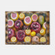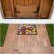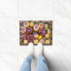 The Fruits Refreshment doormat has pink grapefruit with some kiwi beside some pomegranate and papaya,mango,lime and oranges.All sitting side by side.This floor mat has a abstract frame . The text and text colour can be change to any colour you want it to be with the custom tag.