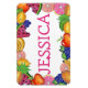 Magnet design features an original marker illustration of an assortment of delicious colourful fruits including apples, watermelon, bananas, grapes, citrus fruit and more. Just personalize with your information.