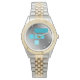 Watch clasp is difficult open even after being used daily. White printing shows up well against the teal background