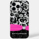 Elegant Personalized with your name or anything you want Fuchsia, White and Black iphone Vintage Damask Elegant case - Faux Diamond - Printed Image - not an attached rhinestone - this is a printed rhinestone - the Black on the top can be changed to any colour by clicking customize and then edit. Use the last tool on the drop down menu to choose from the colour swatches shown or enter your RGB Hex code for a custom colour and a one of a kind case.