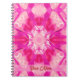 Notebook in a tie dye pattern in shades of deep fuchsia pink, orchid, and pastel pink, accented with soft violet, with editable name field