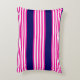 Fuchsia and white five stripes pattern with blue accent pillow