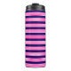 Fuchsia and white five stripes pattern with blue thermal tumbler