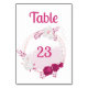 romantic fuchsia and white flowers botanical wreath table number card.