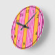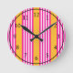 Fuchsia and yellow five stripes pattern round clock