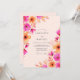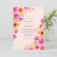 This design showcases vibrant watercolor florals in shades of fuchsia and apricot. The petals resemble cosmos and wildflowers, creating a joyful and energetic mood for a sunny ceremony. Set against a soft peach backdrop, the botanical elements flow along the edges for a whimsical aesthetic. It is ideal for a bright summer or spring event.
