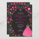 Fuchsia & Black Embroidery Quinceañera Invitation
