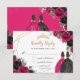 Fuchsia Black Floral Twins Quinceañera XV Reply RSVP Card
