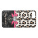 Fuchsia Bow Heart Shaped Faux Bling Leopard Print Case-Mate iPhone Case