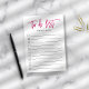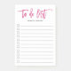 Chic personalized post-it note pad features "to do list" at the top in vibrant magenta pink handwritten style brush lettered typography. Personalize with your name or choice of text beneath, or leave blank if desired. 11 lines with checkboxes help you keep track of all your important tasks!