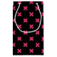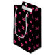 Fuchsia cross stitches on black small gift bag