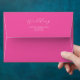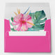 These wedding envelopes are perfect for destination weddings, featuring a vibrant fuchsia pink background with the word "Wedding" in elegant white text. Inside, a stunning watercolor tropical floral design adds a unique and artistic touch.