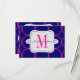 Fuchsia Pink and Navy Blue Modern Wedding Invitation RSVP Card with Monogram Initial and bold circle pattern. Customize with your information and colour choices. You can change the background colour of the circles in the pattern by using the edit menu and changing the colour of the background. Elke Clarke©