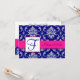 Fuchsia Navy Blue Silver Damask Save the Date 4A Invitation