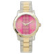 Wonderful fuchsia pink oriental mandala pattern with striped background.
