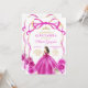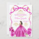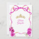 Fuchsia Pink Bow Princess Gold Crown Quinceañera Invitation