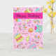 This custom "happy birthday" greeting card is a fun way to say "Happy Birthday". Customize the "happy birthday words" as well as the inside sentiment to say it in your own words or leave as is. Customize with a name. Celebrate a birthday or other occasion with the whimsy birthday cake and cupcake art that is perfect for both boys and girls as well as adults. The whimsy art features a birthday cake with candles and cupcakes, whimsy words “Happy Birthday”, dots and streamers on a turquoise aqua blue background in vibrant colours of pink, red, green, yellow, orange and blue. The art is original art by fabric designer Phyllis Dobbs. The label background is pink with a fuchsia pink strip for personalization. A birthday cake is on the inside right of the card and the sentiment is on the left. Fully customizable. This cute and fun birthday greeting card is available in several background colours in this store.