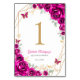 Fuchsia Pink Gold Floral Quinceanera Table Number