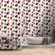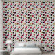 This fun wallpaper features polka dots in fuchsia pink, gold, black and stripes. The perfect accent addition to your home decor.