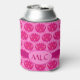 Fuchsia Pink Modern Art Nouveau Damask Monogram Can Cooler