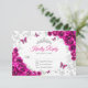 Fuchsia pink silver floral Quinceanera RSVP reply card. Features, script font, silver butterflies, watercolor roses and tiara. Perfect for an elegant princess style glam celebration. Personalize with your own details.