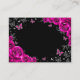 Fuchsia pink black silver Quinceanera reception details enclosure cards. Features, script font, glitter silver butterflies, watercolor roses and tiara. Perfect for an elegant princess style glam celebration. Personalize with your own details.