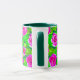 Mug in a pattern of deep fuchsia pink, watercolor, roses with leaves in shades of emerald green