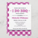 Classic Fuchsia and white design colours with gingham plaid pattern for this rustic and festive I DO BBQ engagement party or couples shower invitation