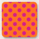 Fuchsia polka dots on orange coaster