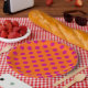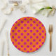 Fuchsia polka dots on orange paper plate