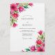 This design features a lively display of vibrant fuchsia blossoms and lush green foliage. The artistic floral arrangement evokes a whimsical and enchanting mood, perfect for a romantic occasion. The color palette is dominated by bold pinks and rich greens.