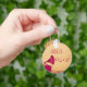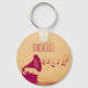 Quirky and unique Vintage Gramophone Keychain in dark pink featuring a silhouette of an old-fashioned gramophone and a cascade of musical notes on a digital art rendered paper background. This chic key fob will keep your keys handy with vintage flair and is perfect for any music lover. Easy to customize, simply personalize with the text of your choosing. Click on the "Customize It" button to find additional personalization options.