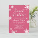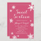 A sprinkling of snowflakes decorates this fun Sweet Sixteen party invitation, on a bright pink background. If additional coordinating items are needed for your event, just contact us at prettyfancyinvites@gmail.com with your request.