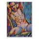 This card features original digital artwork depicting a hot, toned young latin man reclining in a chair. Blank inside.