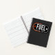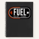 A FUEL Racing League black spiral notebook with a black background, racetracks, an orange crown, and a white star. It is the ideal present for everyone on your list, including yourself, your loved ones, friends, fellow employees, and more.