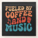 Fueled by Coffee and Music - Retro Typography Glass Coaster