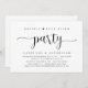 Carte d'invitation de mariage en fuite sur le thème du script noir moderne (Fête pour toujours). Elle est parfaite pour votre réception de mariage en fuite / fête de célébration post-mariage. Ajoutez vos détails dans la même police / lettrage noir.