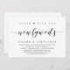 Carte d'invitation de fuite de mariage sur le thème du script moderne (Déjeunez avec nous, les jeunes mariés). C'est parfait pour votre célébration décontractée de fuite de mariage au bord du lac.