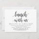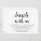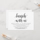 Carte d'invitation de mariage sur le thème du script moderne (Déjeuner avec nous, les jeunes mariés). Elle est parfaite pour votre célébration décontractée de mariage au bord du lac.