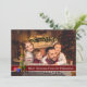 A modern photo Christmas card design with your family photo filling the card face. Fun elf decor with dark red text band for your words.