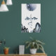 Full Moon and Dragon in Shades of Dusty Blue on White Background Poster -